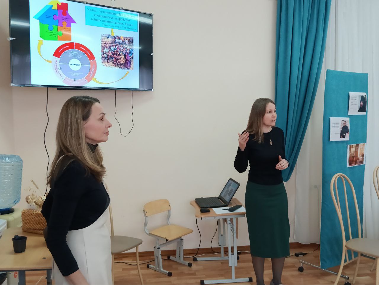 Опытом работы по созданию уклада ДОУ на основе духовно-нравственных ценностей поделились Гайдукова Ирина Петровна и Спиридонова Анна Станиславовна, воспитатели МАДОУ «Центр развития ребёнка - детский сад № 2», г. Кунгур.Прекрасным завершением мастерской стала экскурсия в Пермский Успенский женский монастырь. Педагогов встретила матушка Мария, настоятельница монастыря. Она рассказала об истории обители, её святынях и просветительской деятельности. Участники экскурсии посетили храмы монастыря и духовно-просветительский центр во имя апостола Иоанна Богослова.