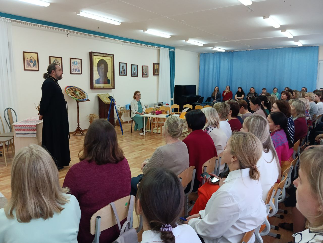 Цель мастерской - повышение уровня компетенции педагогов в сфере духовно-нравственного воспитания (в истинном смысле этого понятия).В работе мастерской приняли участие более 80 педагогов детских садов Перми и Пермского края.Собравшихся поприветствовал директор Пермской православной классической гимназии иерей Пётр Карелин.