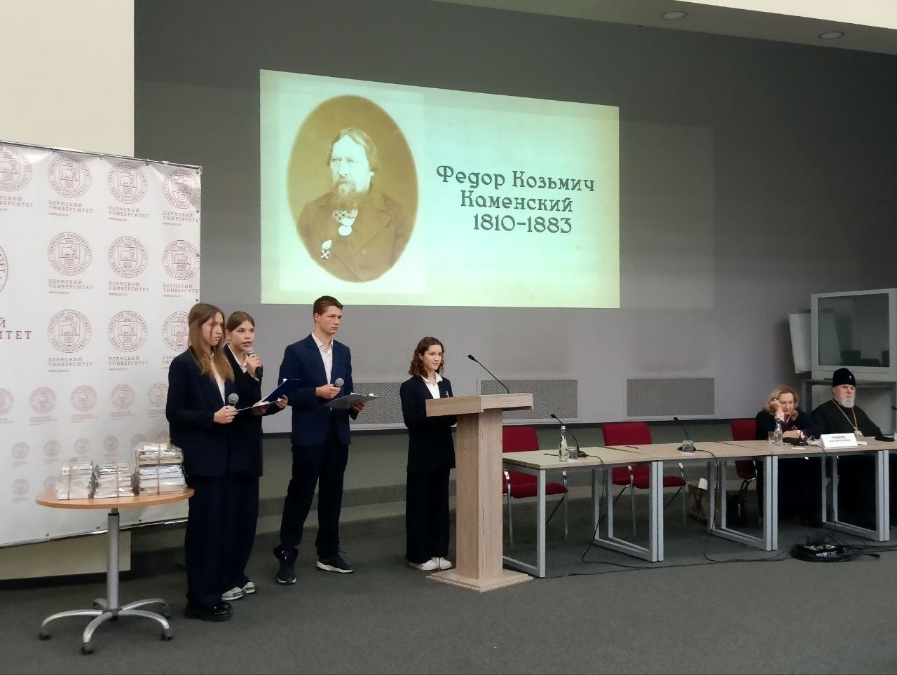 Радостно отметить, что среди выступающих было много участников и выпускников Молодежных историко-просветительских игр «Magistra Vitae». Команда Гимназии № 4 представила свой рассказ-фильм о благотворительной деятельности замечательного семейства пароходчиков Каменских. Студент ПГНИУ и член жюри «Магистры Виты» Кирилл Левин представил доклад о замечательной пермской семье Кобяк и её служении на благо Отечества. Алексей Зенков, студент историко-политологического факультета ПГНИУ, справился со сложнейшей задачей: донести до слушателей проблему сохранения памяти о главном пермском некрополе - Архиерейском кладбище. А учащиеся СОШ № 9 им. А.С.Пушкина выступили с сообщением об истории установки памятника Достоевскому в Перми и памятника Пушкину в деревне Ерши.