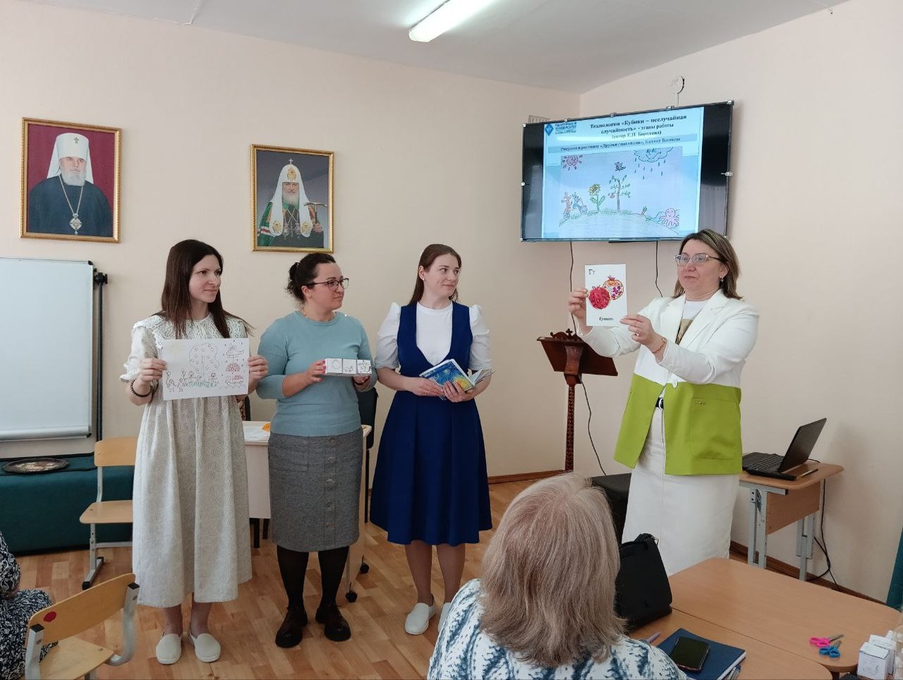Семинар Елены Николаевны был организован по инициативе православного детского сада в рамках педагогической мастерской для педагогов дошкольных образовательных организаций.